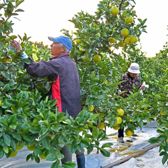浜田さんの文旦は、奥様の強いこだわりで、樹の上でしっかり熟れるのを待って1月の中頃から収穫しています。
