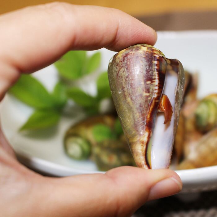 昔は子どもでも捕まえられるほど、潮の引いた海岸でカシャカシャと音を立てていたチャンバラ貝も今は、漁師さんが素潜りで探してやっと獲れるだけ。素潜り漁師も減り、チャンバラ貝そのものも減少傾向となった現在では希少貝となっています。